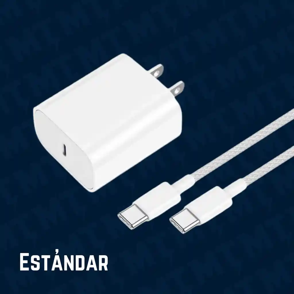 Cargador de 35W, ideal para celulares iPhone 15 y modelos posteriores, iPads, Macs, AirPods Pro 2 y demás accesorios que cuenten con puerto USB-C. Incluye: - Adaptador con puerto USB-C. - Cable USB-C a USB-C. Calidad: Estándar.