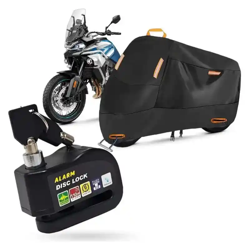 ¿Tu moto duerme a la intemperie o en lugares inseguros? Dale el blindaje que merece. Sabemos que tu moto no es solo un medio de transporte, es tu inversión y tu pasión. Por eso, hemos diseñado el Combo de Protección Definitiva, un sistema dual que mantiene tu máquina impecable por fuera y segura contra los dueños de lo ajeno. 1LA PIJAMA TOURING XXXL: Un escudo contra el clima No es una simple tela. Es una barrera de alta tecnología diseñada para resistir desde el sol más incandescente hasta la lluvia más torrencial. Impermeabilidad Total: Tecnología de repelencia al agua que mantiene tu moto seca incluso en tormentas. Protección UV & Térmica: Evita que el sol tueste los plásticos, decolore la pintura o caliente el asiento. Visibilidad 360°: Equipada con 4 tiras reflectantes estratégicas para que otros vehículos la vean en la oscuridad total. Ajuste de Alta Gama: Incluye hebillas resistentes y orificios frontales reforzados para pasar el candado sin romper la funda. EL CANDADO DE DISCO CON ALARMA: Tu guardaespaldas 24/7 Potencia Sonora: Alarma de 110 decibelios que se activa ante cualquier movimiento o vibración extraña. ¡Nadie tocará tu moto sin que te enteres! Construcción Sólida: Diseño compacto pero indestructible, resistente al agua y a intentos de corte. Doble Llave: Incluye 2 llaves de seguridad para que siempre tengas un respaldo.