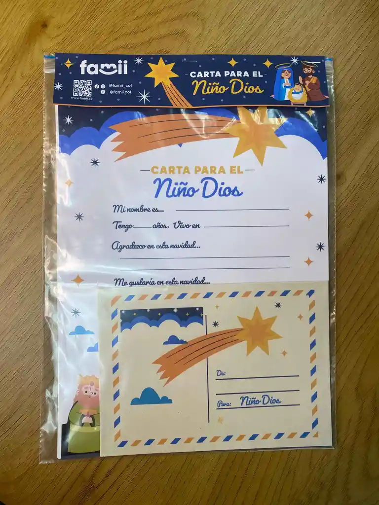 En este kit de carta para el niño Dios, podrás encontrar un sobre, la carta para escribir, una hoja de sticker y tres hojas para colorear ❤️