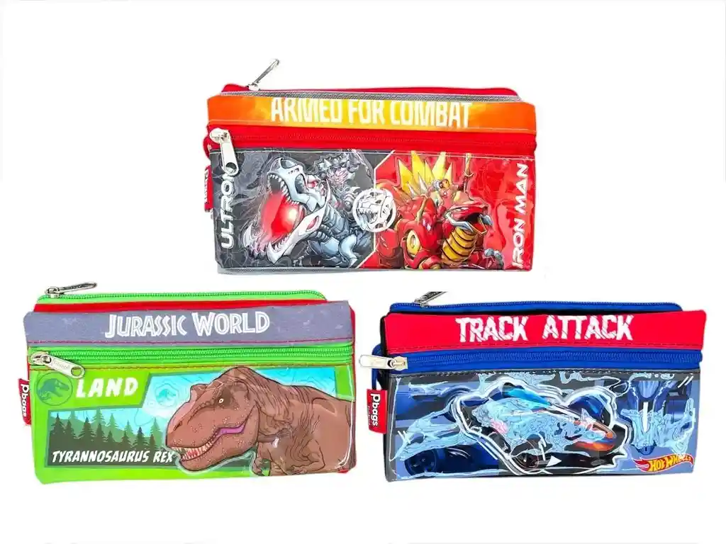 ✏️ CARTUCHERA PARA NIÑO 3 BOLSILLOS DISEÑO SURTIDO MARCA PRIMAVERA