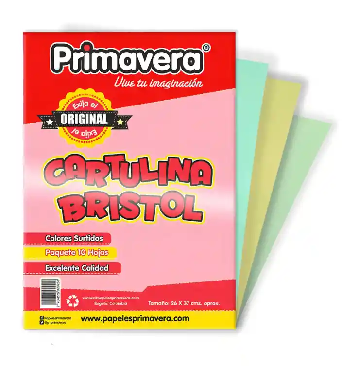 CARTULINA BRISTOL 1/8 X 10 UNIDADES COLORES SURTIDOS, VIENE POR 10 CARTULINAS, COLORES PASTELES