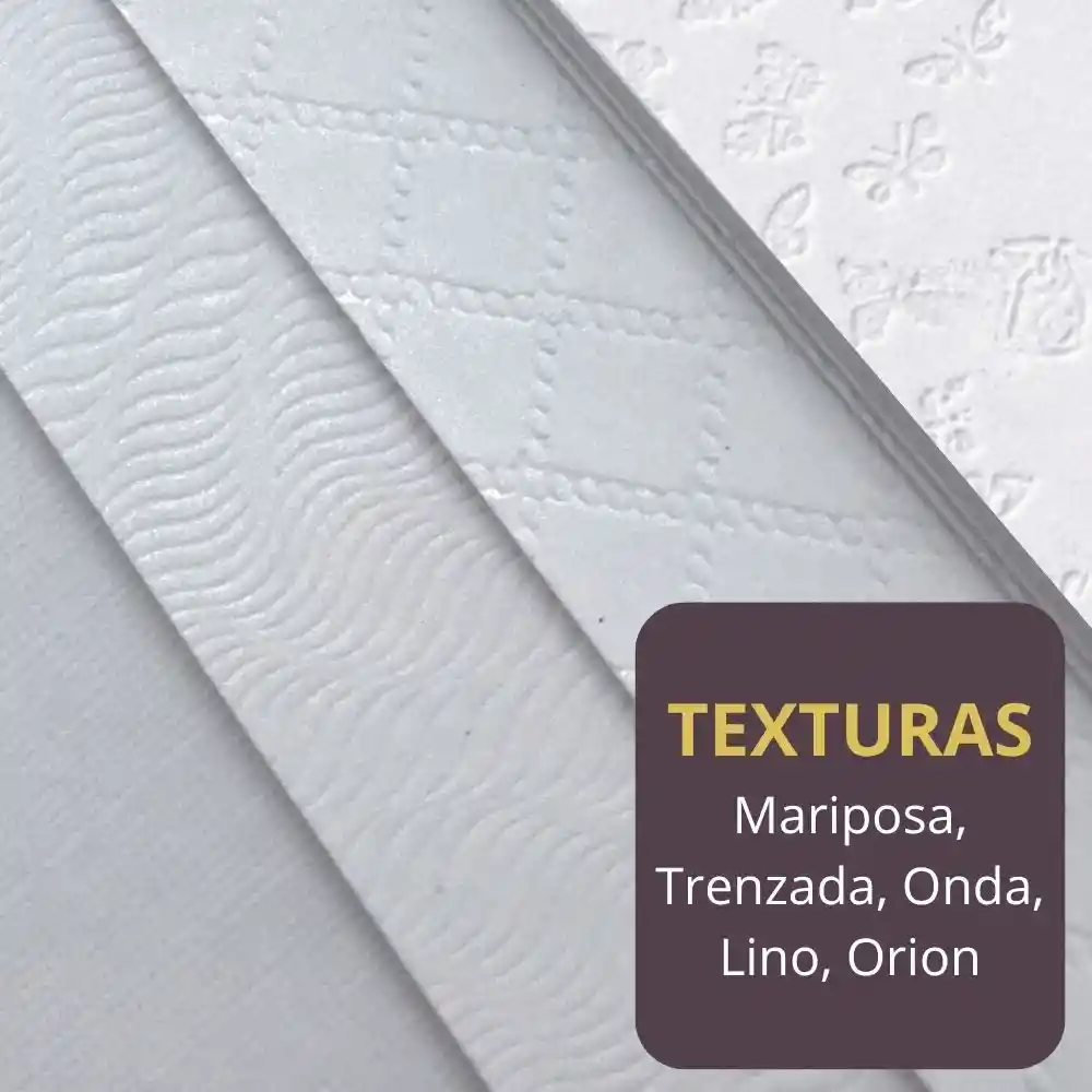 Cartulina Gofrada o con Texturas para Imprimir 180g Tamaño Carta x25 Hojas La cartulina gofrada o con texturas es un papel especial diseñado para dar un toque distintivo y elegante a cualquier tipo de impresión o proyecto creativo. Con un gramaje de 180 gramos, ofrece la firmeza ideal para trabajos que requieren resistencia, sin perder la facilidad de manipulación e impresión. Características diferenciadoras: Texturas surtidas: Incluye diseños como Mariposa, Trenzada, Onda, Lino y Orión, que aportan personalidad única a cada hoja. Tamaño carta (21,6 x 27,9 cm): Versátil y compatible con la mayoría de impresoras domésticas y de oficina. Presentación en paquete x25 hojas: Cantidad práctica para proyectos académicos, laborales o manualidades. Acabado profesional: Superficie gofrada que realza el diseño y otorga un aspecto premium a cualquier impresión. Ventajas: Ideal para impresiones de calidad, como invitaciones, diplomas, certificados, portadas de informes y presentaciones. Ofrece un acabado visual y táctil elegante, elevando el impacto de cualquier documento. Compatible con diversos métodos de impresión y también perfecta para manualidades, scrapbook y decoración. Su resistencia evita que se deforme o rompa fácilmente, garantizando durabilidad en el resultado final. Usos recomendados: Perfecta para invitaciones, tarjetas de presentación, certificados, portadas, proyectos escolares, presentaciones creativas, decoración y manualidades artísticas. Con la cartulina gofrada o con texturas, cada impresión o creación adquiere un estilo único y profesional que resalta a primera vista.