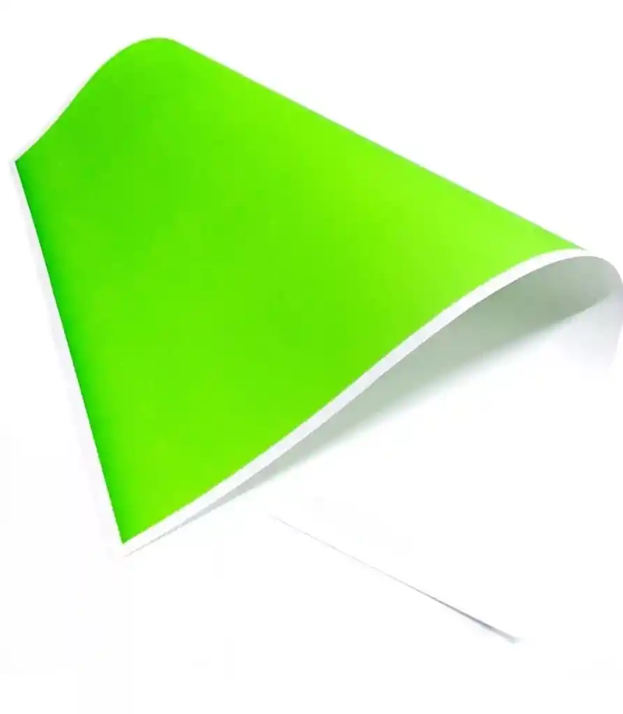 Cartulina Calipso en tamaño 1/2 Medio Pliego. Colores Fluorescentes Neón. Especial para realizar trabajos de escritura, dibujo, manualidades, carteleras y exposiciones. Paquete de 5 unidades solo color verde.