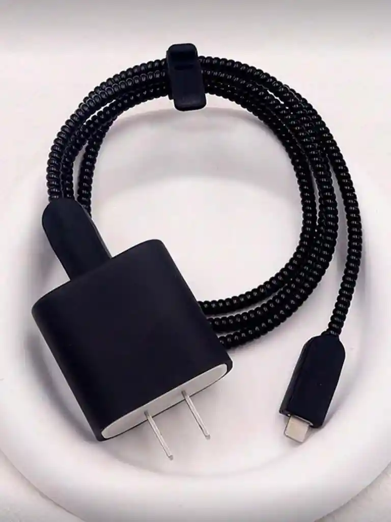 Dale estilo a tu cargador de carga rápida 20W C de iPhone con el nuevo Kit Protector de Cargador. Incluye: - Protector de Cubo. - Resorte Protector de Cable. - Protector de Puntas del Cable. - Amarra Cable.