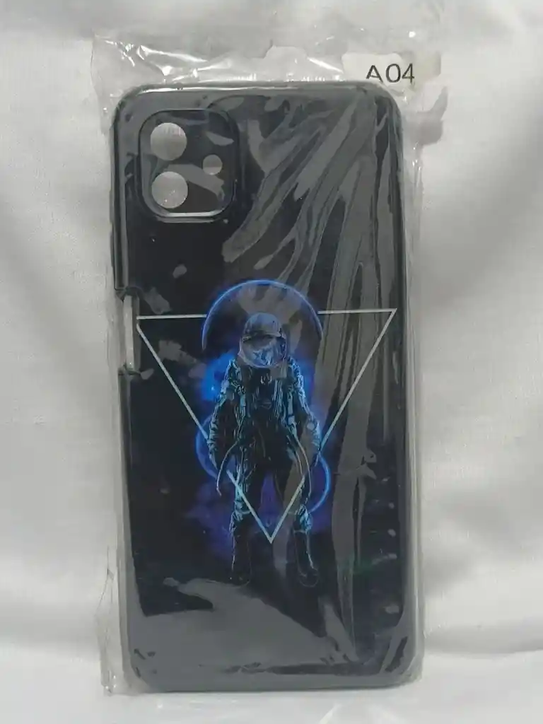 Arte Espacial: Presenta la figura detallada de un astronauta en posición frontal, enmarcado por un triángulo geométrico que le da un toque de diseño gráfico contemporáneo. Efectos de Iluminación: Destaca por sus tonos azules neón y púrpuras que simulan una nebulosa o energía cósmica detrás del personaje, creando un contraste vibrante sobre el fondo negro sólido. Composición Visual: El uso de líneas geométricas y efectos de luz tipo "cyberpunk" lo convierte en un accesorio llamativo y con mucha profundidad visual.