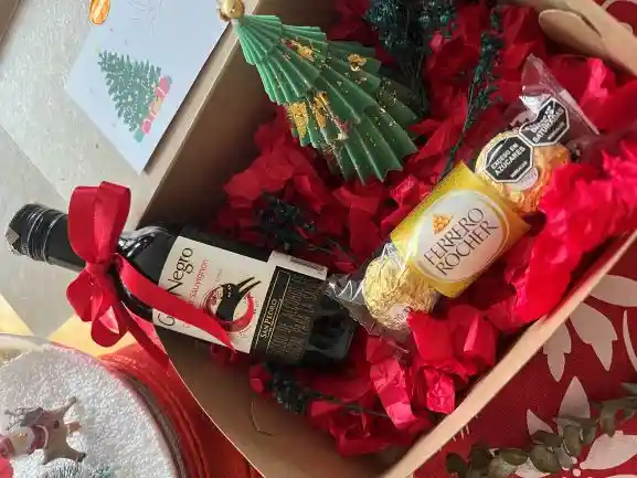 Caja de regalo diseñada especialmente para consentir a esa persona especial, Regala esta caja de spa que contiene elementos deliciosos y agradables, regalo una experiencia única para realizar en la comodidad de su casa. Excelente detalle para amor y amistad, regalo para día de la madre, regalo para día de la mujer, regalo para la secretaria, regalo para la hija, regalo para la abuela. Incluye: 1 vela en forma de arbolito de navidad en cera vegetal, botella de vino tinto pequeña y tres ferreros rocher
