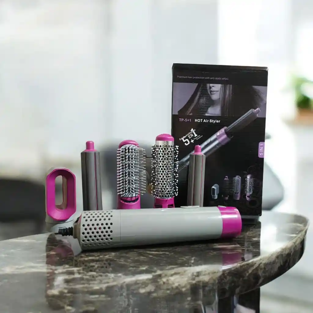 Cepillo Electrico Secador Pelo 5 En 1 Accesorios Intercambia----- Secador de pelo 5 en 1 Kit secador de pelo eléctrico Cepillo de aire caliente Styler Volumizer plancha de pelo rizador peine secador de cabello+regalo Ajustes de calor: 0: Desactivado Nivel 1: Temperatura moderada para un secado y peinado suaves Nivel 2: Temperatura alta para un secado y peinado rápidos Nivel 3: Temperatura más alta para un secado y peinado rápidos *CARACTERÍSTICAS: –Voltaje: 110V –Potencia nominal 1100 W –Temperatura: 100-230 C –Longitud del cable de alimentación: aproximadamente 2 metros –Tres boquillas de aire: boquilla de aire suave, boquilla de aire de modelado, boquilla de aire difusa –3 marchas: aire frío fuerte, aire caliente bajo, aire caliente alto –Material del producto: ABS + ecológico -Cepillo de aire caliente intercambiable 5 en 1 -Potencia fuerte y menor ruido, fácil de bloquear en su estilo. secado rápido -Es muy adecuado para uso familiar, viajes, vacaciones y oficina, mochila, maleta, billetera y bolsa de fitness. *INCLUYE: 1 kit de cepillo 5 en 1