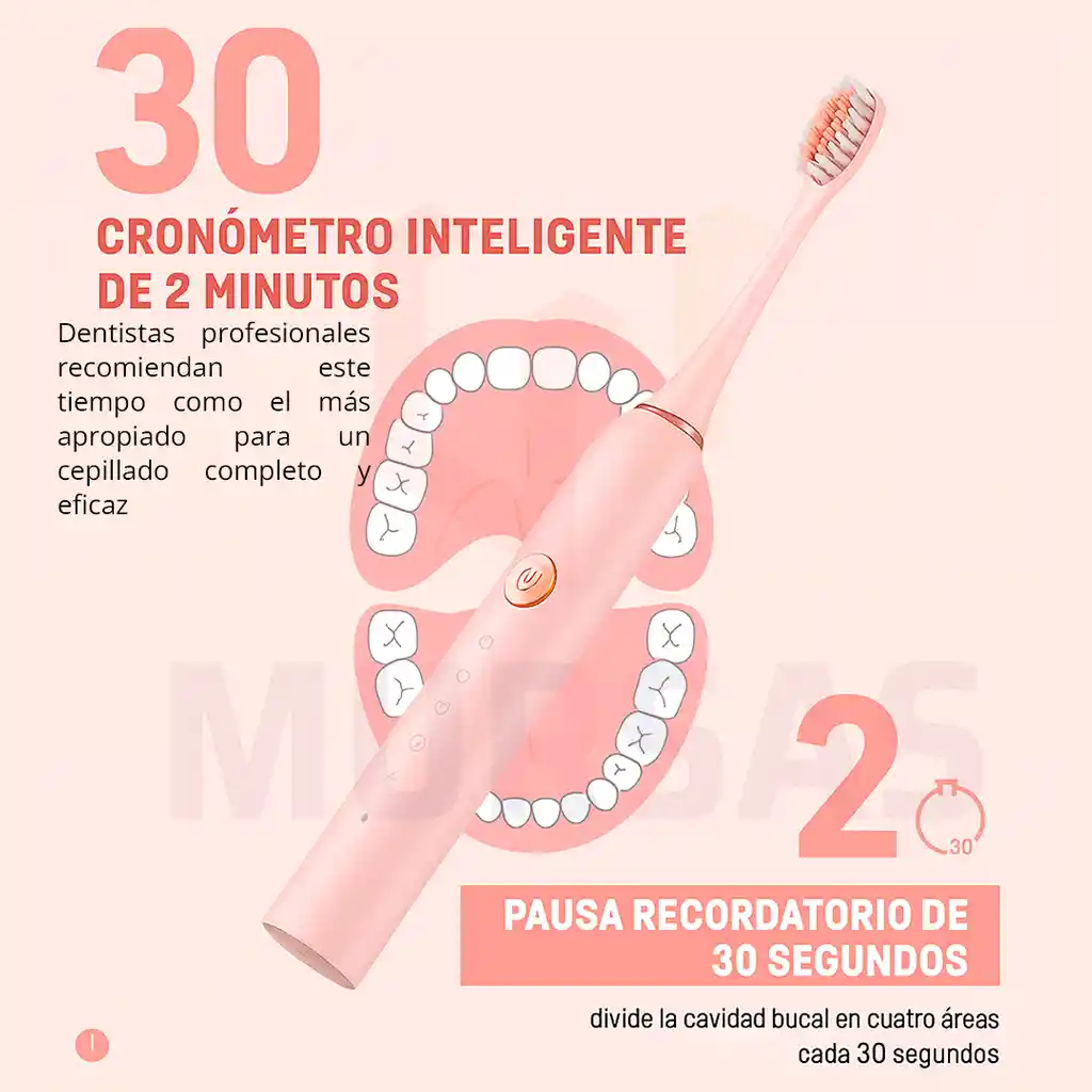 Mejora tu higiene bucal con este cepillo eléctrico de alta tecnología, ideal para adultos y niños. Gracias a su vibración ultrasónica y cabezal de diseño inteligente, elimina la placa bacteriana de forma más eficiente que un cepillo manual. Cuenta con varios modos de cepillado para adaptarse a tus necesidades: limpieza profunda, cuidado de encías y blanqueamiento. Su diseño moderno y compacto lo convierte en el aliado perfecto para una sonrisa saludable todos los días. Limpieza completa, fácil y efectiva. Tu boca lo nota, tu sonrisa lo agradece. Principales características: - 4 Cabezales Intercambiables y 6 Modos de Limpieza: Adapta tu cepillado a tus necesidades con sus 6 modos inteligentes: limpieza profunda, suavidad, masaje, pulido y más. Incluye 4 cabezales reemplazables, pensados para un uso prolongado sin perder efectividad. - Excelentes resultados de limpieza: El cabezal del cepillo está hecho de material ABS apto para uso alimentario, las cerdas suaves, onduladas se adaptan a la forma de sus dientes, protege las encías, reduce la gingivitis mejor que un cepillo de dientes manual, limpia en profundidad las encías y las zonas de difícil acceso, limpia hasta 10 veces más eficazmente que cualquier cepillo de dientes manual, y hasta 3 veces más eficazmente que un cepillo de dientes eléctrico normal. - Temporizador Inteligente y Fácil Uso: El temporizador incorporado te guía para un cepillado correcto y equilibrado, mientras que la función de fácil inicio te permite comenzar a usarlo de inmediato, sin configuraciones complicadas. - Recargable por USB y Resistente al Agua: Su batería recargable por USB ofrece gran autonomía y lo hace perfecto para viajar. Además, su diseño resistente al agua (IPX7) permite un uso seguro en la ducha o el lavabo. - Ligero, Práctico y Portátil: Ideal para quienes buscan una sonrisa sana en cualquier lugar. Su diseño compacto facilita el transporte y lo convierte en el aliado perfecto tanto para el hogar como para llevar en la maleta. - 6 modos de cepillado de alto rendimiento con 3 niveles de intensidad: Para adaptarse a diferentes condiciones de dientes y encías. Ligero en la mano pero limpieza a fondo con ruido reducido, experiencia de cepillado mejorada. control de temporización inteligente incorporado de 2 minutos, intervalo de 30 segundos para recordarle que debe pasar al siguiente cuadrante oral, garantizar un tiempo de cepillado de 2 minutos y desarrollar un hábito de cepillado saludable. - Recargable y Duradero: Este cepillo dental eléctrico cuenta con una batería recargable y función de carga USB. Con solo 2 horas de carga, el cepillo puede durar hasta 30 días (2 minutos de uso, 2 veces al día). Es perfecto tanto para viajes como para uso diario. - Hasta 42.000 vibraciones sónicas: El cepillo eléctrico utiliza tecnología sónica avanzada para empujar el líquido profundamente en las grietas y a lo largo de las encías para una limpieza dinámica. - Cabezal de cepillo para el cuidado de las encías: El cuerpo del cabezal del cepillo está fabricado con material ABS de calidad alimentaria, lo que lo hace seguro de usar. Las cerdas onduladas se adaptan a la forma de los dientes para limpiar en profundidad las encías, las zonas de difícil acceso. La parte superior de cerdas redondeadas garantiza seguridad y suavidad. Mango antideslizante y filamentos protectores. - Carga rápida USB: Se puede cargar directamente a través de la energía, ordenador y otros dispositivos USB, batería de gran capacidad, con función de protección de carga, recordatorio de batería baja. - Función de memoria de engranaje: Después de cada uso, el cepillo de dientes recordará el modo seleccionado, saltará automáticamente al modo de memoria cuando se encienda, más conveniente y más íntimo. Especificaciones técnicas: - Tamaño Aprox. Producto: Cepillo: 21 cm x 3 cm x 3 cm / Cabezal: 7,5 cm - Funcionamiento: Batería recargable USB. - Tiempo de carga: 5 horas. - Tiempo de uso intermitente: 10 días (4 usos diarios aprox.) - limpieza eficiente - Sonido: Menos de 50 dB - Capacidad de la batería: 600 mAh - Tensión del motor: 1,6 W - Tensión de la batería: 3,7 V - Índice de impermeabilidad: IPX-7 - Limpia a diario de forma profunda evitando de manera permanente las caries en tu dentadura. - Podrás limpiar tus dientes con facilidad y sin esfuerzo con los diferentes modos, si tienes una dentadura en buen estado solo debes usar los modos limpieza, suave y masaje. - Si deseas comenzar un tratamiento con un blanqueador dental usa el modo blanqueamiento, restregado medio y fuerte así obtendrás mejores resultados. - El cabezal del cepillo se puede enjuagar directamente, fácil de limpiar y más higiénico que los cepillos convencionales. - Ideal para llevar en tu equipaje o tu bolso para cepillarte de una forma eficaz y rápida. - Ligero, fácil y cómodo de usar. - Ideal para el hogar y los viajes. No se requieren cargadores voluminosos, lo que ahorra espacio en el baño o el equipaje - Proporciona una limpieza suave, cómoda y profunda para tus dientes. - Las cerdas finas brindan una limpieza dental natural al limpiar suavemente las manchas superficiales - Viene con 4 cabezales de cepillo de repuesto, se pueden reemplazar durante un año sin comprar más cabezales de cepillo