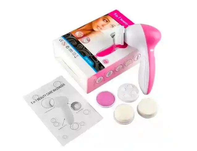 Es una forma segura y asequible de limpiar la cara, refinar la textura de la piel y mejorar el tono muscular. 2. Con la ayuda de masajeador facial, puedes cuidar tu piel fácilmente. 3. Solo unos minutos, puedes tener una piel más sana, elástica y brillante. 4. Exfoliar las células muertas de la piel para revelar una piel joven. 5. Masaje y aplicación de crema para penetrar mejor en la piel y mantenerla nutrida e hidratada. 6. Extracción de células duras debajo del codo. 7. Dimensión: 135 x 85 x 50 mm (aprox.) 8. El masajeador con 5 accesorios: * Accesorio de pulido en bruto: para desgarrar la piel dura y cortarla. * Esponja suave de látex: para masajear las mejillas. * Esponja de maquillaje: para masajear y limpiar tu piel. * Masajeador rodante: para mejorar las circunstancias sanguíneas del envejecimiento cutáneo. * Pincel suave: para despejar todos los escollos de la superficie.