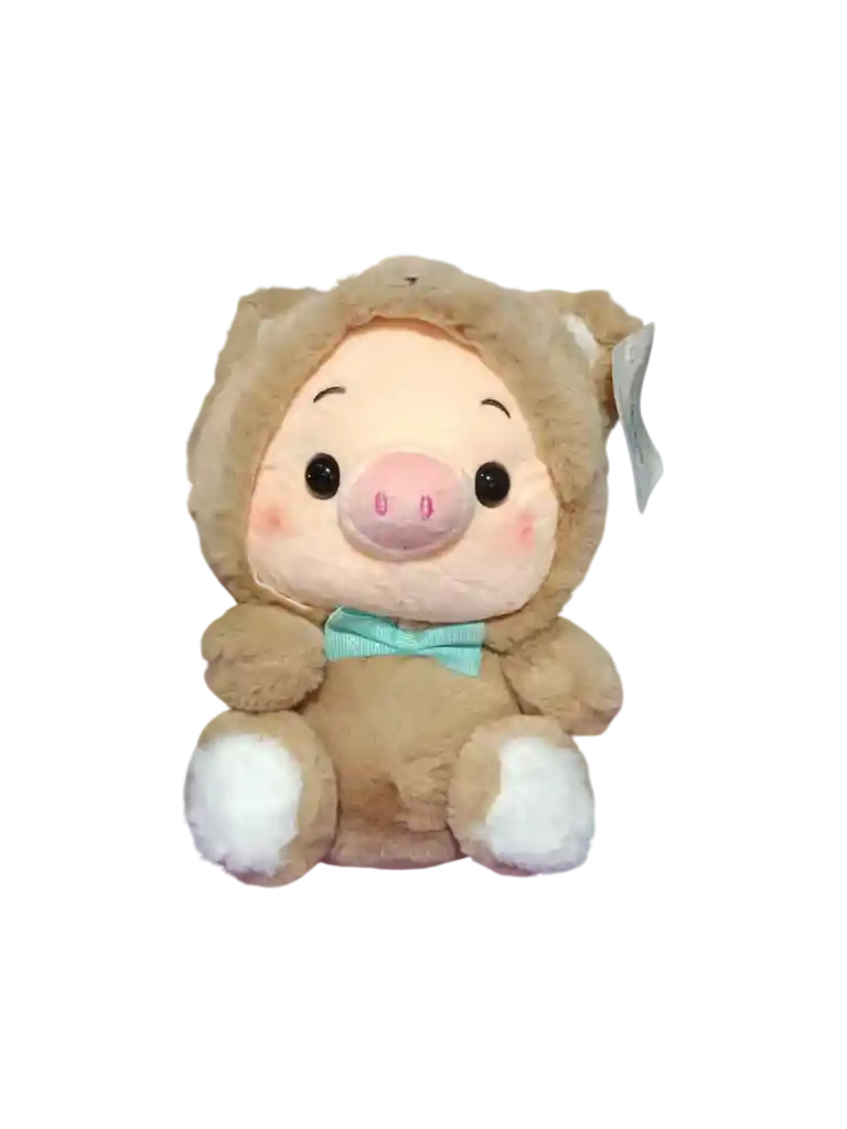 PELUCHE CERDITO DISFRAZ CAFÉ DE 23CM, SUAVE Y ABRAZABLE, CON DISEÑO TIERNO Y DETALLES ENCANTADORES. IDEAL PARA REGALO Y DECORACIÓN INFANTIL.