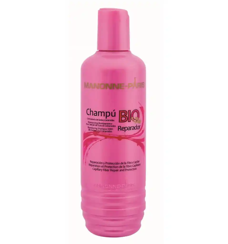 CHAMPU CAPILAR BIOREPARADOR CON EXTRACTO DE SEDA Y CERAMIDAS PARA EL CUIDADO DE LA KERATINA REPARACIÓN INTENSIVA CONTIENE: 320ML Descripción: Innovadora formula de champú Bioreparador libre de sal, enriquecida con acondicionadores y ceramidas, que reparan instantáneamente la fibra capilar, aportando brillo, sedosidad y elasticidad. Ideal para cabellos sometidos a procesos de decoloración, tintura y alisados permanentes. MODO DE EMPLEO: Humedecer el cabello, aplicar el champú y realizar un masaje suave. Enjuagar con abundante agua NSOC36758-10C Acerca de MANONNE-PARIS MANONNE-PARIS es una empresa de origen francés con más de 10 años de trayectoria en la comercialización de productos de cosmética capilar en Latinoamérica. Hemos confiado la fabricación de nuestros productos en el prestigioso laboratorio COSMETIC FRANCE LTDA, con base en Bogotá (Colombia), dado su liderazgo y posicionamiento en la región, sus altísimos estándares de calidad, su tecnología de vanguardia y la amplia experticia y capacidad de innovación de su equipo científico.
