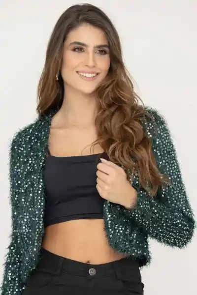 Tejido Plano Con Lentejuela Manga Larga Abierta Largo N Pretina Forro Interno.