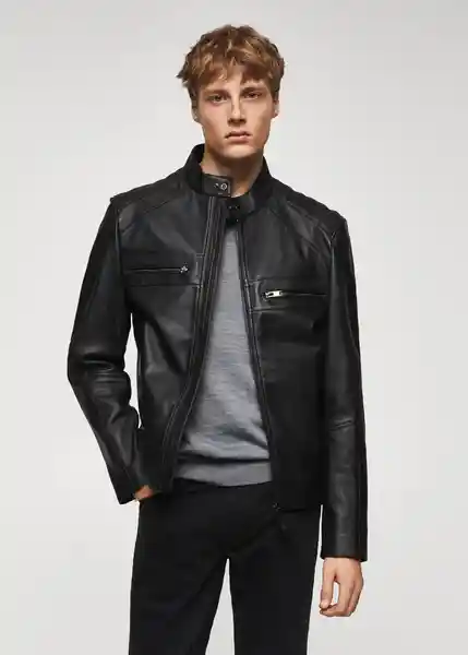 100% Piel Ovino Bolsillo Interior de Cremallera Cuello Redondo Con Botón a Presión Diseño Biker Diseño Medio Dos Bolsillos de Cremallera en el Pecho Dos Bolsillos Laterales de Cremallera el Modelo Mide 185 cm y Lleva Una Talla M Forro Interior Manga Larga - 47040555_99.