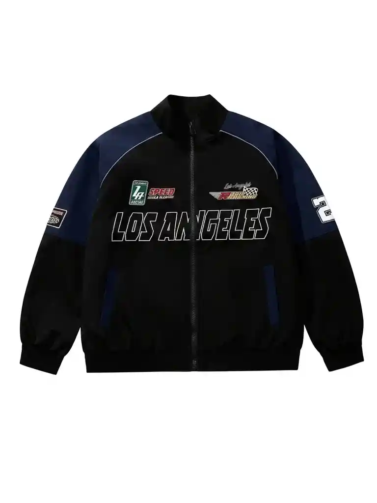 Lleva tu estilo al siguiente nivel con esta chaqueta de edición especial "Los Angeles Speed Club", diseñada para quienes buscan un look urbano, moderno y lleno de personalidad. Confeccionada con materiales textiles de alta resistencia en un elegante contraste de azul marino y negro, esta prenda destaca por sus bordados de alta definición y parches de inspiración racing que garantizan durabilidad y un acabado premium. Su corte tipo bomber incluye una cintura y puños elásticos reforzados que ofrecen un ajuste cómodo y ergonómico, mientras que su cierre frontal completo la hace ideal para protegerte del viento en tus trayectos diarios. Es la combinación perfecta entre la cultura del automovilismo y la moda callejera, asegurando que destaques con un diseño auténtico y una estructura ligera pero protectora.