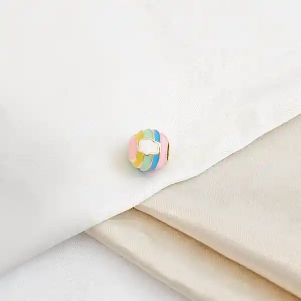 Charm Esfera Multicolor Vibrante en rodio, lleno de energía y color, ideal para darle vida a tus cadenas.