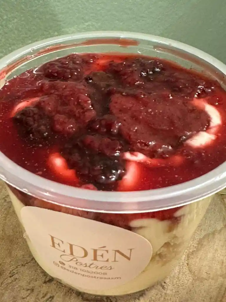 Capas de crema y galleta con mermelada artesanal de frutos rojos. Equilibrio perfecto entre lo cítrico y lo dulce, suave y delicioso.