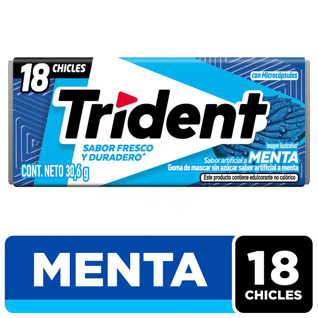 Chicles Trident sin Azúcar sabor artificial a Menta en envase de 18 unidades.