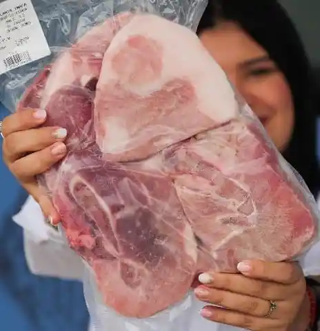 1 paquete de chuleta de cerdo posteada, empacada en bolsa transparente, con un peso aproximado entre 995 y 1.030 g