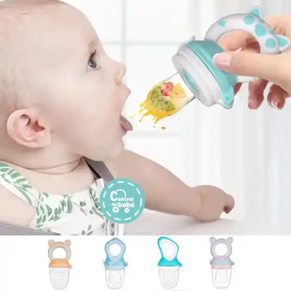 CARACTERÍSTICAS: Hecho de silicona, seguro y no tóxico. Ayuda al bebé a masticar sus alimentos, como frutas frescas y congeladas, yogur, hielo y leche materna, y a absorber los nutrientes. El mango en la parte superior del alimentador de alimentos frescos permite que el bebe tenga facilidad para sostenerlo. La tetina de alimentación de frutas de silicona se puede separar y limpiar con agua hirviendo o tibia antes del primer uso. CUIDADO Y PRECAUCIÓN 1. Utilice siempre el producto con la supervisión de un adulto. 2. Nunca use las tetinas de alimentación como chupete. 3. Inspeccione todos los artículos antes de usarlos. Tire de la tetina de alimentación en todas las direcciones. 4. Siempre verifique la temperatura de los alimentos antes de alimentarlos. 5.Mantenga todos los componentes que no estén en uso fuera del alcance de los niños. 6. No permita que el niño juegue con piezas pequeñas o camine o corra mientras lo usa. 7. La succión continua y prolongada de líquidos causará la caída de los dientes. Colores disponibles: - Mandarina/Gris. - Azul Claro/Azul. - Verde Mente/Blanco. - Azul/Rosado.