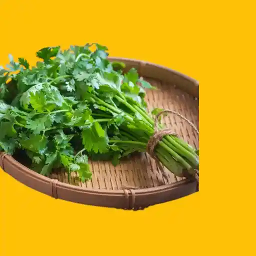 El cilantro es una hierba aromática de hojas verdes brillantes, tallos delgados y flores blancas o rosadas, conocido por su sabor fresco y cítrico que se usa para realzar carnes, ensaladas, salsas y caldos en cocinas de todo el mundo, especialmente en Latinoamérica e India, ofreciendo un aroma y sabor intensos, con un alto contenido de vitaminas y antioxidantes