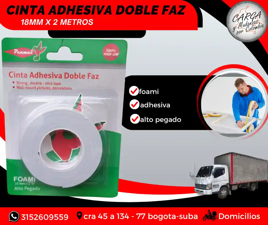 La cinta doble faz (o doble cara) es un adhesivo versátil con pegamento en ambas caras, ideal para fijar, montar y decorar sin necesidad de clavos o tornillos. Ofrece una sujeción fuerte, perfecta para espejos, cuadros, decoración, manualidades y aplicaciones industriales, adaptándose a superficies como vidrio, madera, metal y paredes Visítanos: Cr. 45a # 134 - 77 Local Esquina Contáctanos: 315 2609 559 *ASESORIA SIN COSTO POR WHATSAAP*