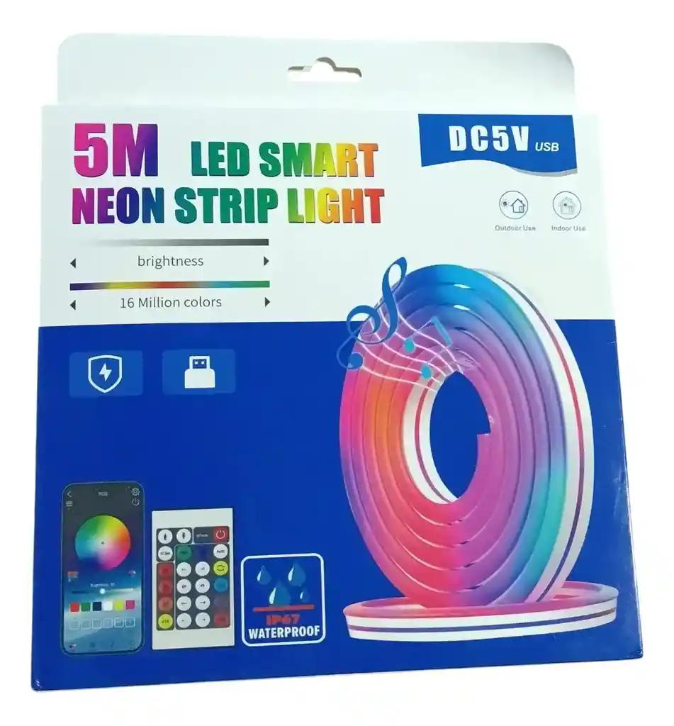 Cinta Tira Luz Led Neón ¡Ilumina cada rincón con estilo moderno gracias a la cinta LED neón RGB flexible con control remoto! DESCRIPCION La cinta LED neón RGB de 5 metros es la opción ideal para darle un toque único y vibrante a tus espacios. Su diseño flexible permite adaptarse fácilmente a paredes, techos, muebles o exteriores, creando ambientes coloridos y personalizados en segundos. Con su tecnología de iluminación uniforme, proyecta una luz intensa y continua que realza cualquier decoración, ya sea para el hogar, oficinas o eventos. Gracias a su control remoto incluido, podrás elegir entre múltiples colores y modos de iluminación para ajustar la atmósfera según la ocasión. Es resistente, duradera y de fácil instalación, lo que la convierte en una solución práctica para quienes buscan versatilidad y estilo en un solo producto. Perfecta para fiestas, habitaciones modernas o como detalle decorativo en negocios y vitrinas. CARACTERISTICAS - Longitud de 5 metros que cubre amplias superficies. - Tecnología LED de bajo consumo energético. - Iluminación RGB con múltiples colores personalizables. - Incluye control remoto para cambiar modos y tonalidades. - Diseño flexible que se adapta a diferentes formas y espacios. - Luz uniforme tipo neón que evita puntos visibles de LED. - Resistente y duradera para uso prolongado. - Instalación sencilla en interiores y exteriores protegidos. - Ideal para decorar hogares, eventos, fiestas o negocios. - Material de calidad que garantiza seguridad y rendimiento. -No certificada QUE INCLUYE LA COMPRA X1 Cinta Led