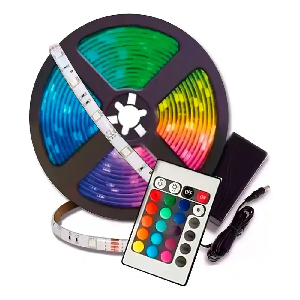 Cinta led RGB 5050 en silicona Con control y adaptador RGB multicolor Rollo de 5 metros Atenuación o dimerización posible 60 LEDs por metro Tamaño del LED 5050 Vida útil: Más de 50,000 horas Voltaje de la cinta 12V, conexión a 110v o 220v con adaptador incluido Corte a medida en múltiplos de 5 cm Potencia: 40w (8w por metro) Contenido del producto: Rollo cinta led 5050 de 5 metros Controlador de colores Control de cambio de color Fuente de poder 2.7 amperios