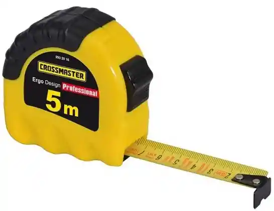 Flexómetro (Cinta de Ferretería/Construcción): Materiales: Generalmente hecho de una aleación de acero duro o metal, que le permite mantenerse rígido en distancias cortas antes de doblarse. La carcasa suele ser de plástico o metal resistente. Usos: Esencial en carpintería, construcción, bricolaje y diseño de interiores para medir objetos y espacios con precisión. Características: Tiene un mecanismo de bloqueo y retracción automática para facilitar su uso. El extremo cuenta con un gancho móvil que compensa su propio grosor al medir por dentro o por fuera.