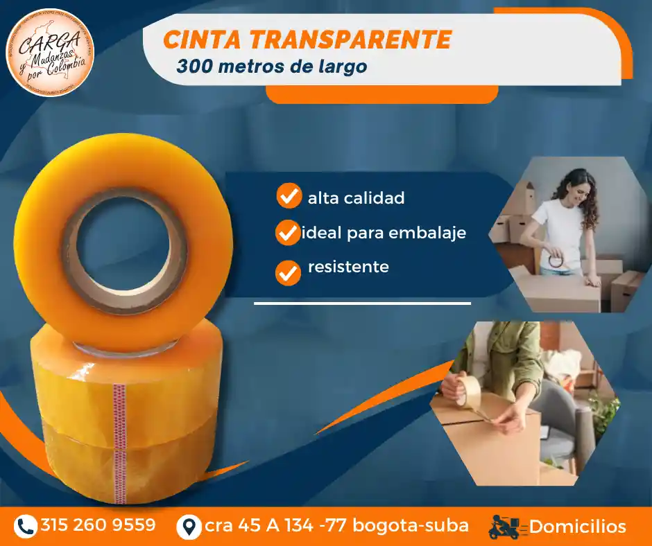 La cinta transparente es el mejor adhesivo por excelencia en el sellado de diferentes tipos de superficies. Ideal en el empaque y embalaje se utiliza en el sellado de cajas de cartón, plástico burbuja, cartón corrugado o papel kraft los cuales son productos complementarios a la hora de proteger nuestros objetos en una Mudanza o empaque de mercancía. - Ofrece una excelente adherencia y resistencia. - Ideal para el sellado de cajas, bolsas entre otros. - Fácil para corte, fácil desenrollado, aísla de la humedad/polvo, apto para usar en todos los dispensadores manuales. Medidas: 300 mts de largo x 48 mm de ancho. Alta Calidad - Producto Garantizado. Visítanos: Cr. 45a # 134 - 77 Local Esquina Contáctanos: 315 2609 559 *ASESORIA SIN COSTO POR WHATSAAP*