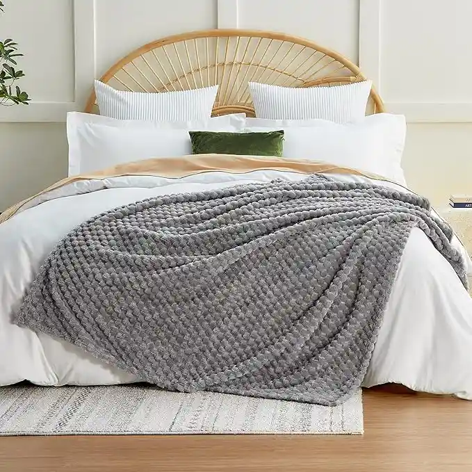 Cobija Sherpa Ovejera 3d Nubes Doble 190x210 Cm Gris