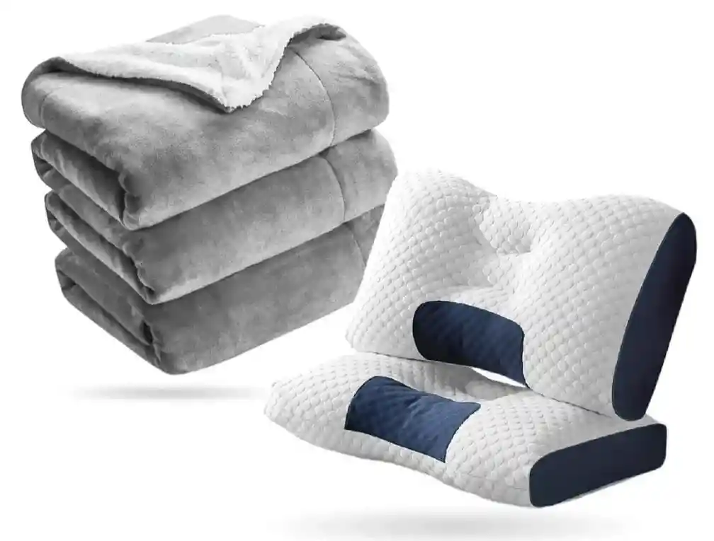 Transforma tus noches en una experiencia de spa de lujo ¿Te despiertas con tensión en el cuello o sientes que tu descanso no es suficiente? Es momento de elevar tu estándar de sueño. Este Confort ha sido diseñado con ingeniería ergonómica avanzada para ofrecerte el equilibrio perfecto entre soporte ortopédico y suavidad envolvente. ¿Por qué este combo cambiará tu vida? Cobija Térmica Dual: El abrazo perfecto: Con un diseño de doble faz, esta manta no solo mantiene la temperatura ideal en noches frías, sino que su textura ultra suave es gentil con tu piel. Higiene y Durabilidad: Todo el kit es de fácil mantenimiento y lavable a máquina, garantizando un ambiente de descanso limpio y saludable por mucho más tiempo.