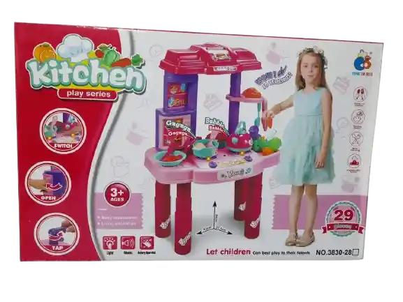 ¡Deja que los niños exploren su creatividad culinaria con este set de cocina Kitchen Play Series! Con una mesa de juego resistente y 29 accesorios, incluyendo ollas, sartenes, utensilios y alimentos de juguete, este set está diseñado para niños a partir de los 3 años. Su tamaño compacto y su atractivo diseño hacen que sea perfecto para horas de juego. Cuenta con luces y sonidos realistas para una experiencia de juego interactiva y emocionante. Este set es ideal para el desarrollo de habilidades motoras y juego de roles en un ambiente seguro y divertido.
