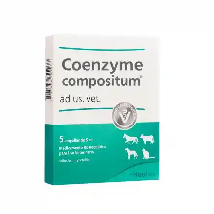 Coenzyme Compositum Ampollas facilita el buen funcionamiento de las células bloqueadas metabólicamente, y facilita la producción de energía. Indicado en bovinos, caninos, felinos, equinos, y porcinos. brinda un estimulo extra de energía para una más rápida recuperación del paciente.