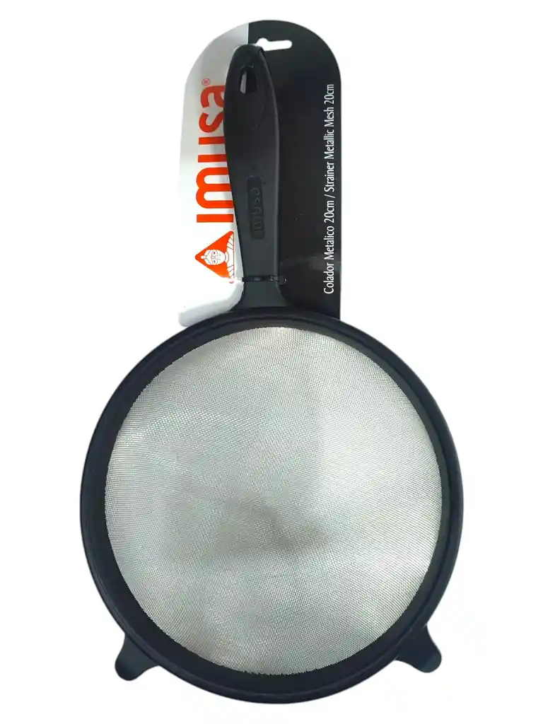 Colador Metalico Imusa 20 Cm Acero Inoxidable Es un colador Grande, su malla es de Metal resistente al calor. El mango y el borde son de un fuerte plástico color Negro. Es ideal para colar, jugos, aceite, tamizar harinas, entre otras cosas. Sus Medidas son: Largo: 32cm Diámetro: 20cm