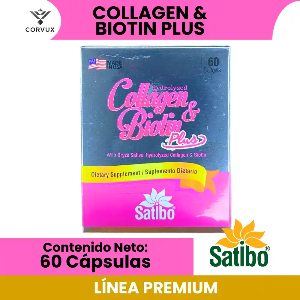 Colágeno + Biotina | Collagen & Biotin Plus Satibo X 60 Cápsulas Blandas | Piel, Cabello Y Uñas Radiantes 💖