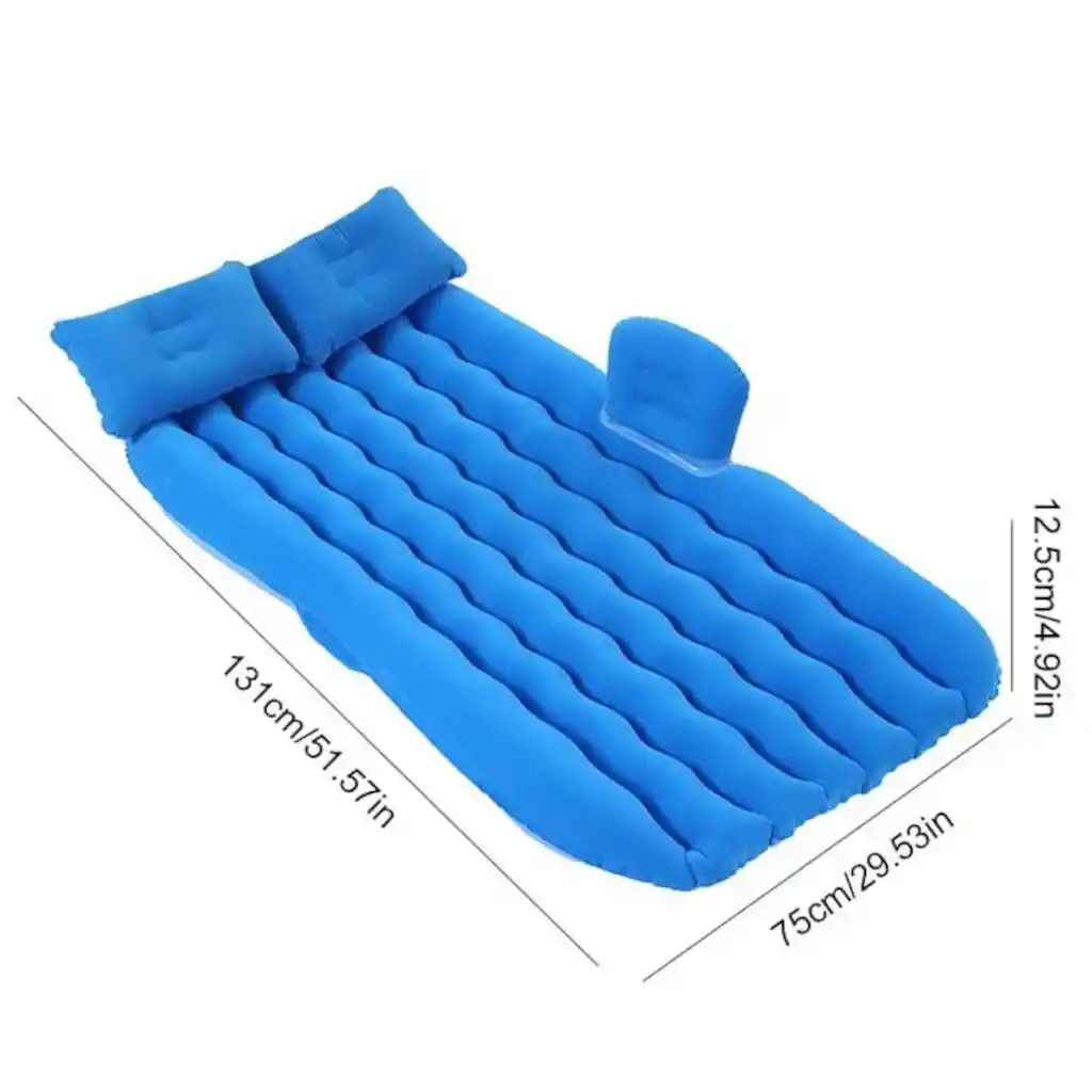 ¡Convierte tu carro en un espacio de descanso ideal! Este colchón inflable para carro es la solución perfecta para viajes largos, camping, paseos o cualquier emergencia en la carretera. Su diseño ergonómico y material resistente garantizan comodidad y durabilidad, brindando una experiencia de descanso placentera en cualquier momento. DETALLES Conéctalo a un inflador portátil y en pocos minutos estará listo para usar Se adapta a la parte trasera del carro, brindando un soporte estable y seguro Adaptable a cualquier espacio Ideal para viajes, camping y emergencias Fácil de inflar y desinflar en minutos Diseño ajustable para la mayoría de los carros Superficie suave y confortable para mayor descanso Incluye almohadas inflables para mayor comodidad Material resistente y de alta calidad Compacto y fácil de transportar Dimensiones del producto: 115 cm profundo, 80 cm ancho y 42 cm alto. *IMPORTANTE* El color del producto puede variar, según la disponibilidad en el momento* **INFORMACION IMPORTANTE **El color de la foto es referencial para que puedas ver los atributos del producto y al mismo tiempo es la opción 1 nuestra de despacho. Pero dejamos la aclaración para que lo tengas presente por si te llegara en otro color.** NOTA : La foto de este producto ha sido ambientada, por lo cual no incluye ningún adorno, ni accesorios, ni piezas adicionales ni ningún otro elemento que lo acompañan. Observaciones De Garantía: 1 Mes **** La garantía de este producto es exclusivamente por defectos de fábrica, no por daños ocasionados por mal uso o por desconocimiento de uso del cliente. La garantía se tramitará bajo las políticas, términos y condiciones establecidos por la empresa. ****