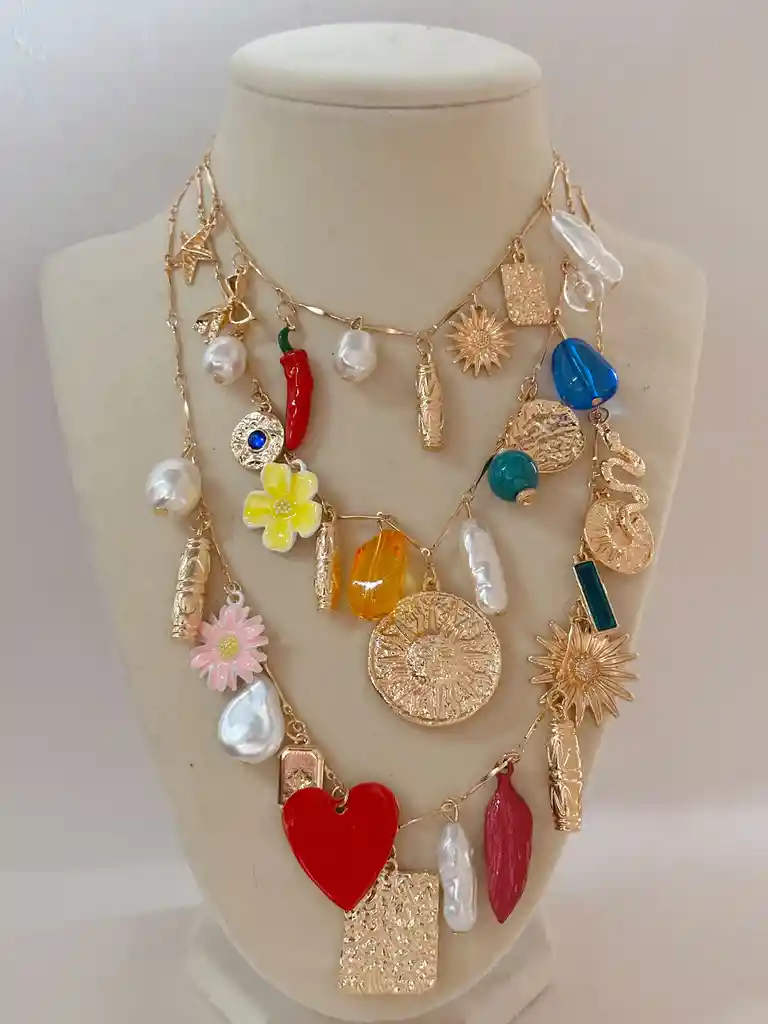 • Collar 3 en 1 úsalo junto o por separado • Material Zamak (fantasía) • Cadena graduable • Ten presente que algunas de las fotos de apoyo incluyen otros productos que se venden por separado