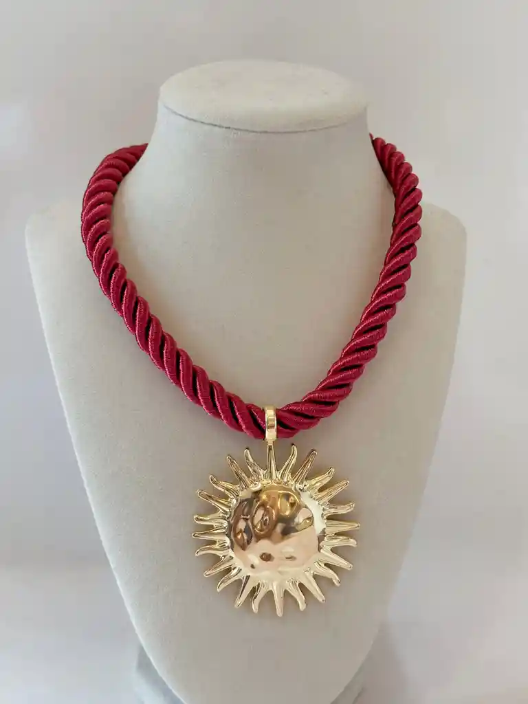 • Maxi collar en cordón con dije en sol • Material cordón y dije en acero • Cadena graduable • Ten presente que algunas de las fotos de apoyo incluyen otros productos que se venden por separado