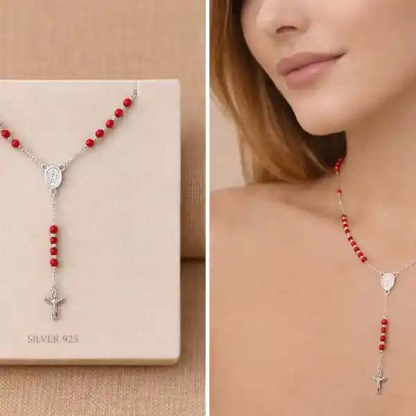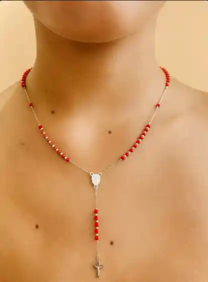 COLLAR: CAMANDULA CIRCON ROJO PLATA 925 La plata en joyería ofrece beneficios estéticos como su brillo, versatilidad y asequibilidad frente a otros metales preciosos, permitiendo diseños intrincados y elegantes. Además, se le atribuyen propiedades terapéuticas y energéticas, como ayudar a la circulación, regular la temperatura corporal, aliviar el dolor de la artritis y actuar como escudo protector contra energías negativas, siendo además hipoalergénica para pieles sensibles y fácil de mantener.