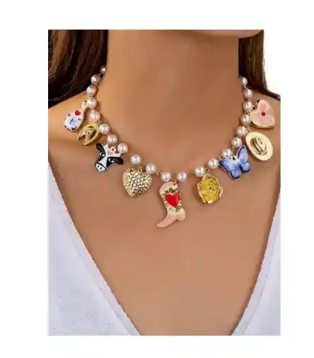 Collar de Perlas con Dijes Western Pop – Edición Limitada ✨ ¡Un accesorio que mezcla ternura, estilo vaquero y actitud única! 🤠🌸 Este collar combina perlas blancas clásicas con una selección de dijes temáticos que lo convierten en una pieza statement: 🐱 Carita de gato blanco y rojo 🤠 Sombrero vaquero dorado 🐄 Carita de vaca en blanco y negro 💛 Corazón dorado texturizado 👢 Bota rosa con flor roja 🦁 Cabeza de león dorada 🦋 Mariposa azul 🍀 Herradura dorada 🌸 Flor rosa dentro de corazón Perfecto para elevar cualquier outfit con un toque juguetón y sofisticado. Ideal para sesiones fotográficas, contenido visual o como regalo original. ✨ Diseño único y lleno de detalles 🔗 Cierre cómodo y seguro 📸 Ideal para looks creativos, reels o vitrinas temáticas