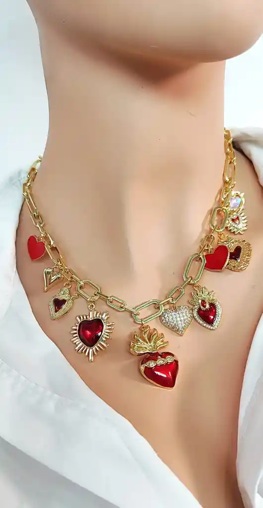 Collar dorado con dije en forma de corazón Material: rodio Antialérgica