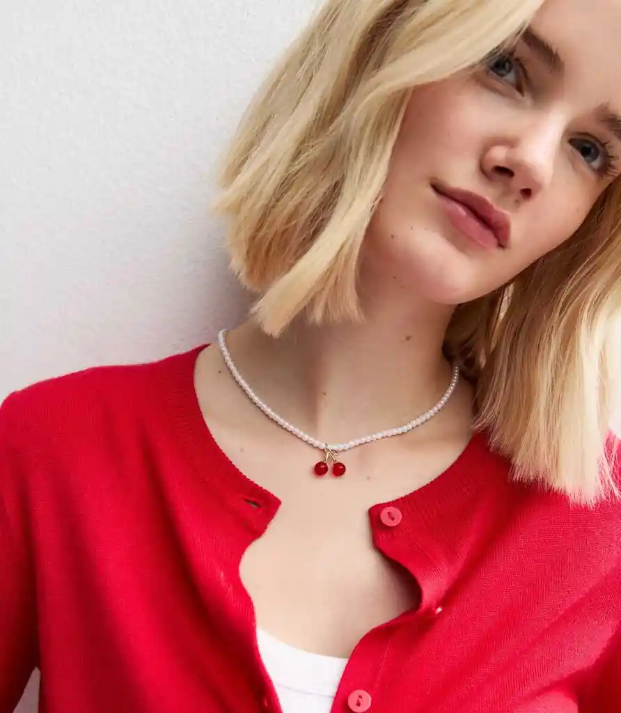 Collar elaborado con perlas de vidrio y dije central de cerezas. Diseño delicado y femenino que aporta un toque romántico y moderno a cualquier look.