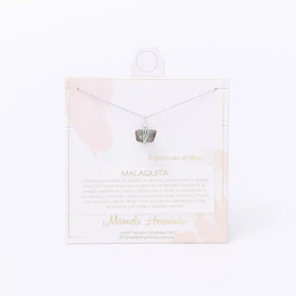 Cadena y apliques Plateados con Baño de Plata 925. Elaborado con Malaquita Natural.