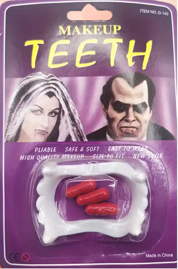 Colmillos / Dientes De Vampiro Con Pastillas Rojas De Sangre - halloween
