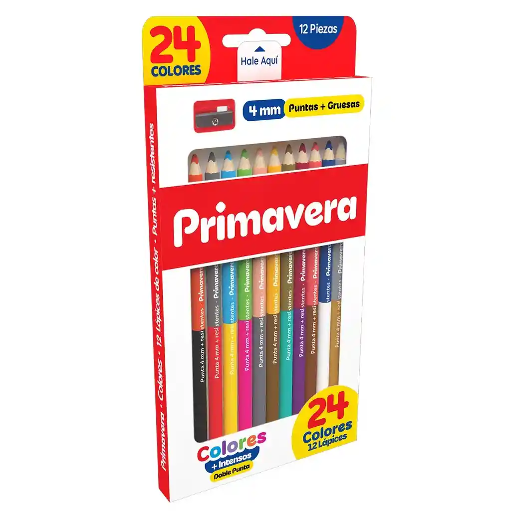 COLORES PRIMAVERA, MINA 4 MM, INCLUYE TAJALÁPIZ, COLORES INTENSOS, IDEALES PARA USO ESCOLAR.