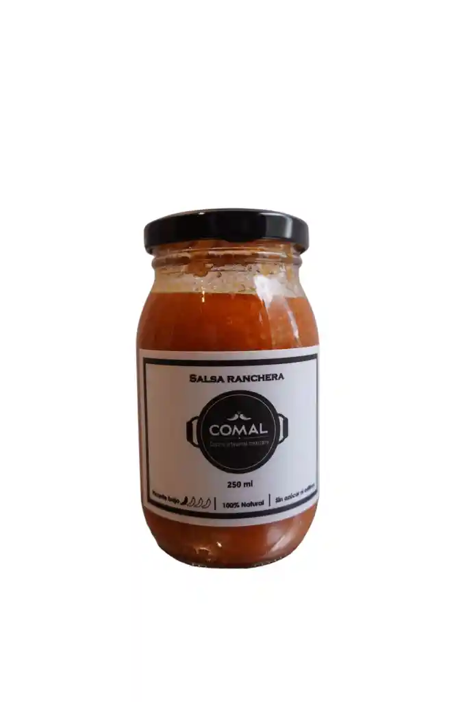 Sin azúcar ni aditivos, 100% natural. Ingredientes: Tomate rojo, cebolla asada, jalapeño, ajo, sal, condimentos. Picante bajo 1/4.