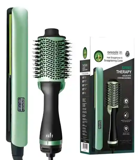 Plancha para el cabello con Aguacate: Esta plancha está diseñada para proporcionar un alisado suave y sedoso mientras nutre el cabello con aceite de aguacate, conocido por sus propiedades hidratantes y reparadoras. El aceite de aguacate ayuda a mantener el cabello suave, brillante y saludable mientras se aplica calor. Esta plancha suele tener placas de cerámica o turmalina para un deslizamiento suave y un calentamiento uniforme. Cepillo Secador: Este es un cepillo que combina las funciones de secador de para el cabello y cepillo redondo en un solo dispositivo. Es ideal para secar y peinar el cabello al mismo tiempo, lo que puede reducir significativamente el tiempo necesario para arreglarlo. El cepillo secador suele tener cerdas de nylon o cerámica que ayudan a desenredar el cabello y a distribuir el calor de manera uniforme para un secado rápido y un peinado suave y voluminoso.