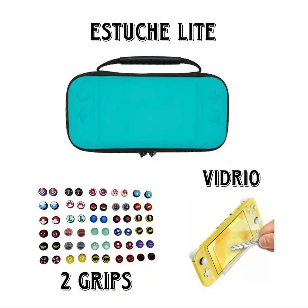 Combo Estuche Lite Azul + Vidrio Lite + 2 Grips