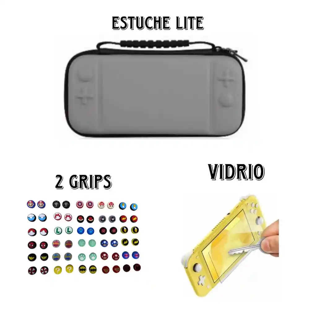 Combo Estuche Lite Gris + Vidrio Lite + 2 Grips