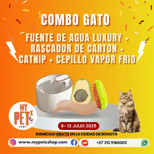 fuente de agua luxury con capacidad de 3 lt + rascador de cartón + catnip con adhesivo para pared + cepillo de vapor frio.